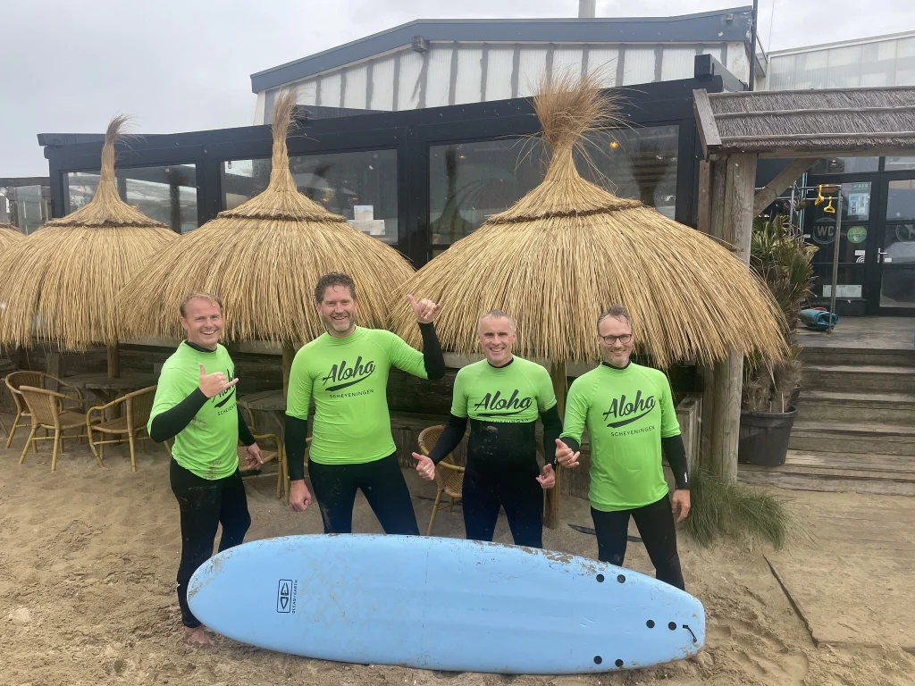 Voldoende opgewarmd in het CDA kantoor, was het daarna tijd voor wat verkoeling én actie aan het strand in Scheveningen. Na een onweersklap en wat regen hadden wij bij Aloha Beach surfschool namelijk les in golfsurfen in de Noordzee.