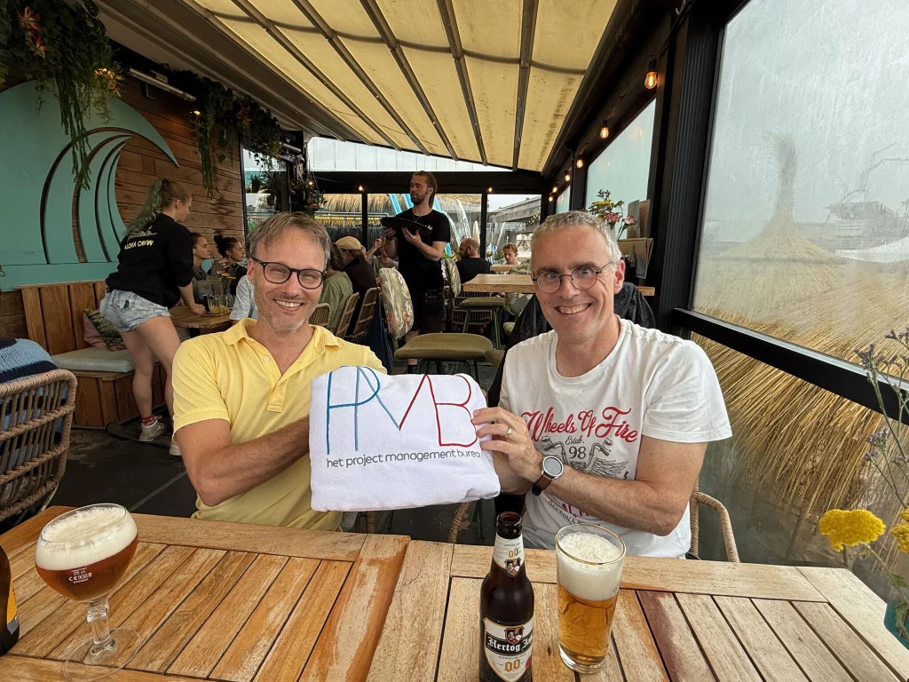 Bij ons zomeruitje hadden we traditiegetrouw ook iets voor medewerkers: na de hangmat in 2024 was er nu voor iedereen een PMB badhanddoek.